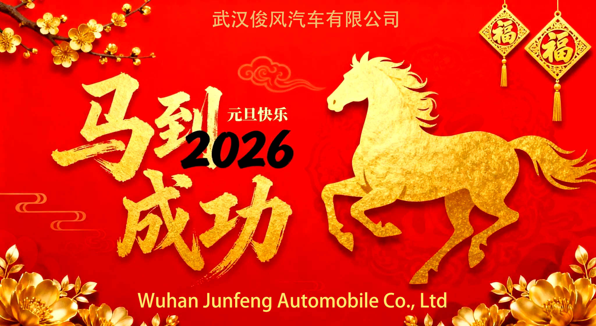 新元肇启,万象更新。值此辞旧迎新的美好时刻,俊风汽车公司向过去一年辛勤付出的全体员工,向长期以来关心支持俊风发展的合作伙伴与各界朋友,致以最诚挚的感谢和最美好的新年祝福!